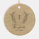 Custom monogram initial and name with family established year elegant chic farmhouse style Christmas tree ornament with photo overlay. +++++++ A modern keepsake gift for newlyweds.
