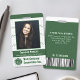 These photo ID badges have a forest-green-and-white theme. They include your employee's photo, name, and job title on the front, plus the name of the corporation / company and business logo. The back includes room for "if found" information (including address and phone number), plus space for an ID number and a bar code. The design also includes a grid pattern background and a line graph theme. Use the easy template to personalise, and then use the design tool to make more detailed changes (such as adjusting the size of the logo or barcode or deleting and rearranging elements). This eye-catching design is perfect for an office manager, administrative assistant, executive, or any business employee.