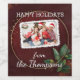 Unique, classic, trendy, pretty and decorative Holiday season wine label. Fun faux gold confetti pattern on a dark red background, with leaf and hazelnut image. With room to customise with photo of your choice, and personalise with your family name.