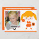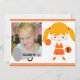 You can add your child's photo and all her party information to these cute and colourful cheerleading theme birthday party 5x7" invitations before ordering! Features a cheerleader with blonde hair and an orange uniform, a megaphone with your child's name, and her age on a pom pom!