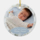 Discover a unique, classic, and charming ornament adorned with a stunning blue, grey, and brown marble pattern. Personalize it with a name, text, or a photo of your choosing. This customizable photo display serves as a perfect keepsake gift for grandparents or new parents!