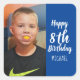 Custom Photo Personalised Birthday Party Stickers for a Boy with blue background. Just add your own custom photo to this template and change the text to personalise it for your child.