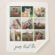 Custom photo blanket with your personalised pictures in a grid collage. Add your own text in a modern script calligraphy style font
