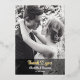 A custom photo personalised stylish romantic wedding design to say thank you to all those that sent their congratulations and celebrated the union of the couple that just married. The elegant newly weds design is great for thanking those who sent their well wishes and attended the wedding or anniversary celebration. Replace the image with a vertical picture of the bride and groom. The calligraphy script text can be customised and personalised with the names of the couple. You can change the font colour, font size and font type. You can also change the colour of the thank you heart graphic using the Design Tool. The special appreciation design is yours to customise and personalise as you wish. The minimalist design can be transferred to other products.