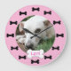 Custom Photo Pink and Black Dog Bones Personalised Large Clock