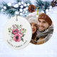Custom Photo Pink Floral Christmas Ceramic Tree Decoration
