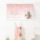 Welcome guests with this chic, glamourous 80th birthday party photo banner, featuring a sparkly pink faux glitter drip border and pink ombre background. Easily replace the sample image with a photo of the guest of honour. Personalise it with her name in rose handwriting script, with the birthday and date below in rose sans serif font.