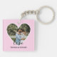 Custom Photo Pink Heart Frame Modern Calligraphy Key Ring