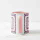 Custom Photo Pink Pattern Mother’s Day Mom Mommy Tea Coffee Mug. In pretty colors of muted pink, dark red, blue, and green; in a multicolour, maximalist, modern geometric pattern. For winter warmer drinks and cheerful hot chocolate on cozy winter nights in. Change the three photos to your own pictures to celebrate joyful family memories. Buy as a budget friendly festive keepsake drinkware gift for her, new mothers, wives or grandparents.