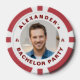 Personalised Bachelor Party Favour.Make the groom’s night unforgettable with this custom photo poker chip featuring his picture and personalised bachelor party text. A unique and fun keepsake for guests, this black-and-white chip is perfect for casino-themed parties, groomsmen gifts, or bachelor night game tables.