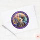 Custom Photo Purple Buffalo Plaid Merry Christmas Classic Round Sticker