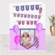 Upload your photo to this big, personalized birthday card. The template is ready for you to add your photo to the front as well as the birthday girl's name and your custom greeting inside. The design features bunting lettered with "Happy Birthday to You" and party balloons in shades of purple and pink. Your picture is framed with a purple banner flag. Inside the message reads "Happy Birthday [name] Congratulations on your ##th birthday .. have a fantastic day" and you can either edit the message or delete it.