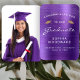 Help your graduation guests keep cool during the ceremony or party with these custom photo graduation hand fans, featuring the words "Congratulations to our Graduate" in white text on a purple faux brushed metal background. The word "Graduate" appears in a graceful handwriting-style script. A pair of gold faux glitter mortar board caps and a scattering of gold confetti decorate the top portion of the label. Personalise one side with your grad's name, school, and year of graduation. Easily replace the sample image on the other side with a photo of your grad.