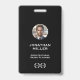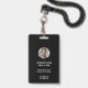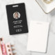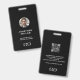 Enhance your corporate security with our Custom Photo QR Code Employee ID Badge. Featuring a customisable employee photo, name, and title on the front, along with your logo, this badge exudes professionalism and functionality. The back offers space for a custom QR code, company name, and address, or personalised text, providing comprehensive identification for your staff. With a sleek black background and white classic typography, this badge offers a modern, minimalist design suitable for any business environment. Elevate your corporate branding and security measures with our customisable ID badge solution.