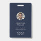 Enhance your corporate security with our Custom Photo QR Code Logo Employee ID Badge. Featuring a customisable employee photo, name, and title on the front, along with your logo, this badge exudes professionalism and functionality. The back offers space for a custom QR code, company name, and address, or personalised text, providing comprehensive identification for your staff. With a rich navy blue background and classic grey typography, this badge offers a modern, minimalist design suitable for any business environment. Elevate your corporate branding and security measures with our customisable ID badge solution.