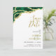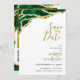 Create elegant white, emerald green and gold save-the-date cards decorated with an agate-style geode pattern on a white background. Templates make it easy to type names, date and place, website, and upload your photo on the backside. You can also add a QR code to your wedding website - make sure to add your website there before ordering so that the QR code works as it has to.
