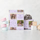 This personalised lavender Quinceañera wrapping paper is a beautiful way to present a special gift. It features a modern, tiled pattern that combines two of the birthday girl's photos, her birthday, and name. The lavender and lilac colour scheme provides a soft and elegant backdrop, while the charming scribble-style sketches of crowns, butterflies, and flowers and "Mis Quince años" text add a touch of whimsy. It’s the perfect, custom detail to make her Quinceañera gift even more memorable.