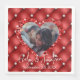 These custom napkins feature a Valentine love or wedding theme with a photograph heart frame. The background is a red cushion pattern with diamonds and mosaic frame. A sample photo of a married or engaged couple is placed in the centre.