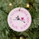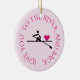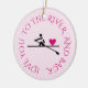 A lovely pink hanging ornament with a rowing theme. On one side is a pictogram of a rower transporting a heart, with editable text in deep pink: "LOVE YOU TO THE RIVER AND BACK". On the other side, upload your favourite photo. For Valentine's Day, for Christmas, for any romantic occasion.