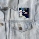Custom birthday age button for kids, upload their photo and name to the fun space graphic with a friendly alien trailing party streamers in celebration.