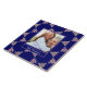 Here's a great personalised decorative addition to your kitchen, bathroom, outside patio, front door area, or anyplace in your home where a Spanish, Mediterranean style look fits right in. The tile pattern in deep indigo blue with repeating floral design makes an eye catching statement on this ceramic tile. Add your favourite personal family, friend, or baby photo together with their name and your have a keepsake that's going to bring you joy as long as it's in your home. If you have a design question or would like to see this design on another product, please feel free to contact me at jschmidtdesignworks@gmail.com.