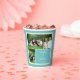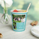 These party cups are ready to be customised with three of your photos and your own message. The collage of photos and your text are set inside of a white scalloped frame and set against a teal or turquoise blue background. Not crazy about the background colour? Select the option to customise further and change the background colour to your preferred shade.