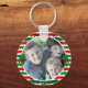 Custom Photo Template Red Green Stripes Mistletoe Key Ring