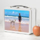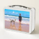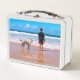 This is a standard metal lunchbox that appears to work just fine. We designed this box ourselves with an uploaded photo and custom text on the front and back. It looks absolutely beautiful except the front of the lunchbox is not centered like it shows in the photo. The print borders don't align with the inset flat part of the box where the preview photo online showed it perfectly centered in there. The back looks nice and centered though.