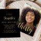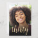 The front of this 30th birthday invitation features the guest of honour's photo with a gold-coloured text overlay. The word "thirty" appears in elegant gold-coloured calligraphy script. A dark screen helps make the text pop. Customise the reverse side with the name and party details on a black background. A great way to celebrate someone who's turning thirty!