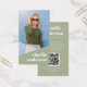 Modern, vertical, sage green or any colour photo business cards with your name, title and social media. Add your QR code on the back. You can change background and font colours, move and resize elements with the design tool. Follow us on Facebook: @businessstationery for more products, news, sales and more.