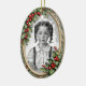 An oval shaped Christmas ornament in which your custom photo and message are framed in a beautiful vintage style holly border.