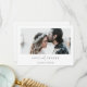 This simply chic custom photo wedding thank you card template features an elegant, minimalist, modern design. Please check our store for a vertical version on this design, too! The front features your first names under your favourite photo and a 'LOVE and THANKS' message conveyed with a striking blend of two distinct fonts, with 'and' in a light, flowing script between the rest of the other two words, which are in upper case with a bold, crisp formal look.The 'LOVE and THANKS' part of the design is in black and can't be altered. When you edit the front to show your own names, you might change the colour of that text to gold or something else instead of the default black according to your taste. On the both sides, we've set the background as transparent, so that the colour of the paper will simply serve as the base colour. You can choose a colour for the background on one or both sides if you prefer. The default text colour on the back is dark grey, but you can change this if you prefer another colour. We've put some sample text on the back for you to replace with your own message as you see fit, but please don't feel restricted by this. If you prefer delete our sample text entirely and keep the back totally blank so that you can write a handwritten note on each card instead, you can do that. Or you might want to replace our text with your own message of gratitude and your own closing and then hand sign your names when you receive the cards. In any case, please do remember to remove all of the sample/placeholder text on both sides as well as our sample photo! We've chosen matte rather than semi-gloss as the default paper choice, as it is well suited to writing your own message on and won't smudge. You can of course change this to semi-gloss, or you might consider upgrading to something with a texture such as zazzle's 'Laid' or 'Felt White', which can add a feeling of warmth and depth. We hope you'll enjoy experimenting with various aspects of this stylish modern wedding thank you card's appearance and make it uniquely yours with the intuitive design tools and your inspiration!