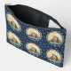 Personalised cute cosmetic bag with white little stars pattern and custom photo on blue