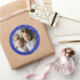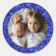 Custom Photo with Blue Glitter Frame Classic Round Sticker
