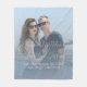 This modern wedding or engagement keepsake blanket features a photograph of the couple across the background which you can replace with your own custom photo. A dusty blue gradient extends from the bottom portion.