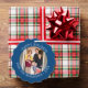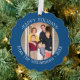 Fun custom ornament card features your photo and text on both sides. Easily add your photo, name, year, and message (Happy Holidays, Merry Christmas, Happy New Year...) in the sidebar. The text will appear in curved white text on a blue border around your photo.