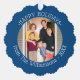 Custom Photo with Name Blue Border Holiday Tree Decoration Card