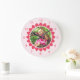 Clock design with personalised option of your own photograph inside peachy colour hearts circle.