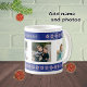 Upload four of your favourite photos, then personalise by adding a name, initials or other text, and you have a lovely and unique gift. Square photos work best, so Instagram photos are ideal, but other shapes will be automatically cropped to fit. Above and below the photos there is a navy ribbon with a pattern of stylised poinsettia flowers and hearts. [Photography © Storytree Studios, Stanford, CA]