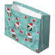 Customise this fun big gift bag featuring stylish cute winter scene with Christmas Santa hats, mittens, and scarfs surrounded with snowflakes. Designed for you to replace template photos with photos of your family members. It will appear as they are all wearing Santa's Christmas hats. To position your photos right click on the Customise it! button under the product image and then you'll be able to resize and move around your custom photo faces to set them perfectly under a hat.