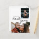 Personalise this New Years' postcard with your favourite photos and spread good cheer for the New Year. Customise the greeting message, names, and return address. Featuring a modern, unique, script type for the word "New Year" on the front.