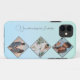 Create a unique custom phone case with a chic and stylish geometric pattern in grey over a gradual blue background. Personalise this case with your text and desired photo by uploading your photo in place of the sample shown in the design template.