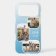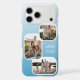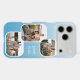 This light summer sky blue and white colored iPhone case is a perfect way to showcase your loved ones and express your personality. It has room for 3 photos of your family, pets, or friends, which you can easily upload and adjust. You can also customize it with a short text or name of your choice. This iPhone case is made of durable material that protects your phone from dust, scratches, wear and tear, and drops, while adding a touch of warmth and charm to your everyday look. This design is available in iPhone 6, 7, 8, 10 or X, XR, XS, 11, 12, 13, 14, and 15 Mini and Pro Max cellphone cases. Show off your style, look fashionable trendy, and feel stylish with a unique design on a mobile device accessory of your choice.