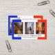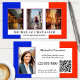 Business card featuring your custom photos with the French flag as background on the front. On the back is space for another photo and also a QR code template. Beautiful for a teacher of the French language or customisable for for instance a travel agency offering trips to France.