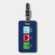 Cute personalised physical therapist luggage tag gift. Peace love and physical therapy on dark blue background. Add your own custom information on the back for your suitcases.