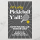 Invite guests, players and friends to your pickleball meetup club, open play, tournament, event, party or club! Flyer Invites with pickleball graphic for your partner or team. Let's play pickleball y'all, with custom personalized team or other name. Perfect for a pickleball social group, club team, best friends or senior group league uniform, award or competition tournament.