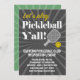 Invite guests, players and friends to your pickleball tournament, event, party or club! Invites with pickleball graphic for your partner or team. Let's play pickleball y'all, with custom personalized team or other name. Perfect for a pickleball social group, club team, best friends or senior group league uniform, award or competition tournament.
