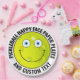 8 x personalised text sports Pickleball Ball custom Happy Face Large 9" Disposable Party Paper Plates - Blue Eyes version. Great for pickleball player / lover custom birthday party supplies or pickle ball theme baby shower. See store for full range of personalised options. Fully personalise all text with your message(s). One-click customisation of upper and lower text by clicking 'Personalise this template'. Make your own party plates for a child's birthday party or anyone who likes funny party decor.