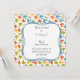 This is easy to customise invitation is perfect for a garden party, picnic or an event of your choosing. The background and back of this flat panel square shaped card is illustrated with bright coloured mushrooms or toadstools in sunny warm shades of blue, spring green, orange, and yellow. Use the handy fill in the blank template to easily customise this card with your party or event's information.