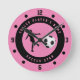 Custom Pink and Black Girl's Soccer Star Player Round Clock